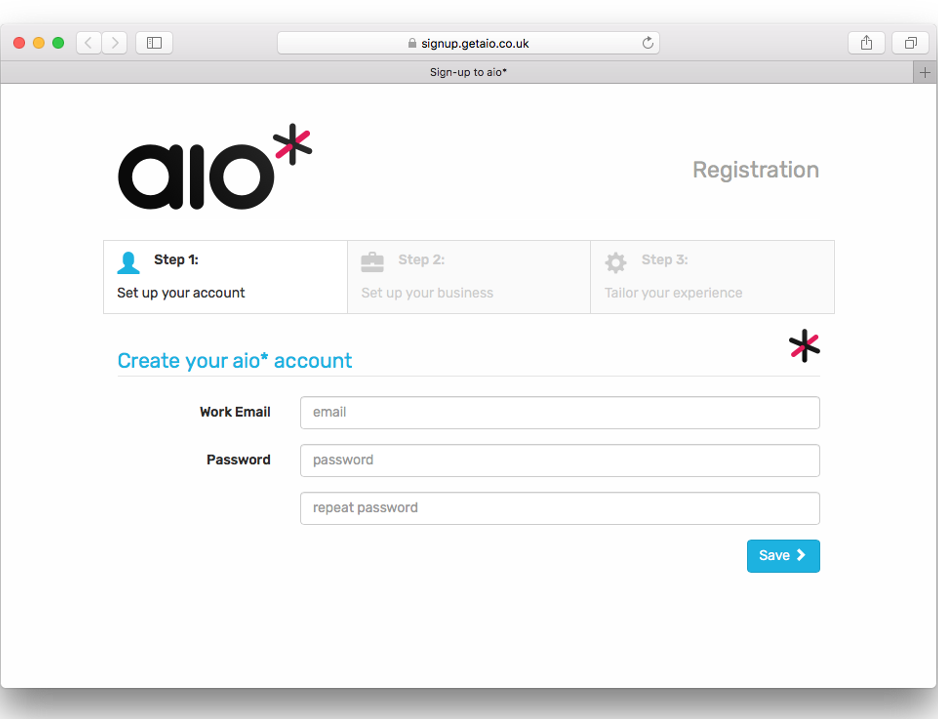 Special KYB-requirements ("know-your-business") made it necessary to capture specific information about a company when signing up for aio*. An easy click-through form is using a REST API from "Companies House", which allows to auto-populate most info about a company from public records and helps to improve the user experience. On the other end, registrations can be seen through the aio* internal admin portal. It allows to manage companies and users, while access from the outside world is blocked through the use of VPN and AWS Web ACL. Both web projects are hosted on AWS S3 and AWS CloudFront is used as CDN.