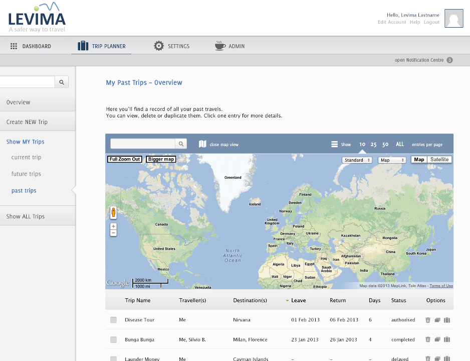 This platform for travel management and risk assessment allowed users to plan their itineraries before going on business trips. The system was developed as a Scala application making use of Lift web framework. Several third party components and APIs were used: Flightstats (REST APIs for flight information), Google Places, Google Maps. Simple build tool (SBT) and Jenkins were used for building and deploying.